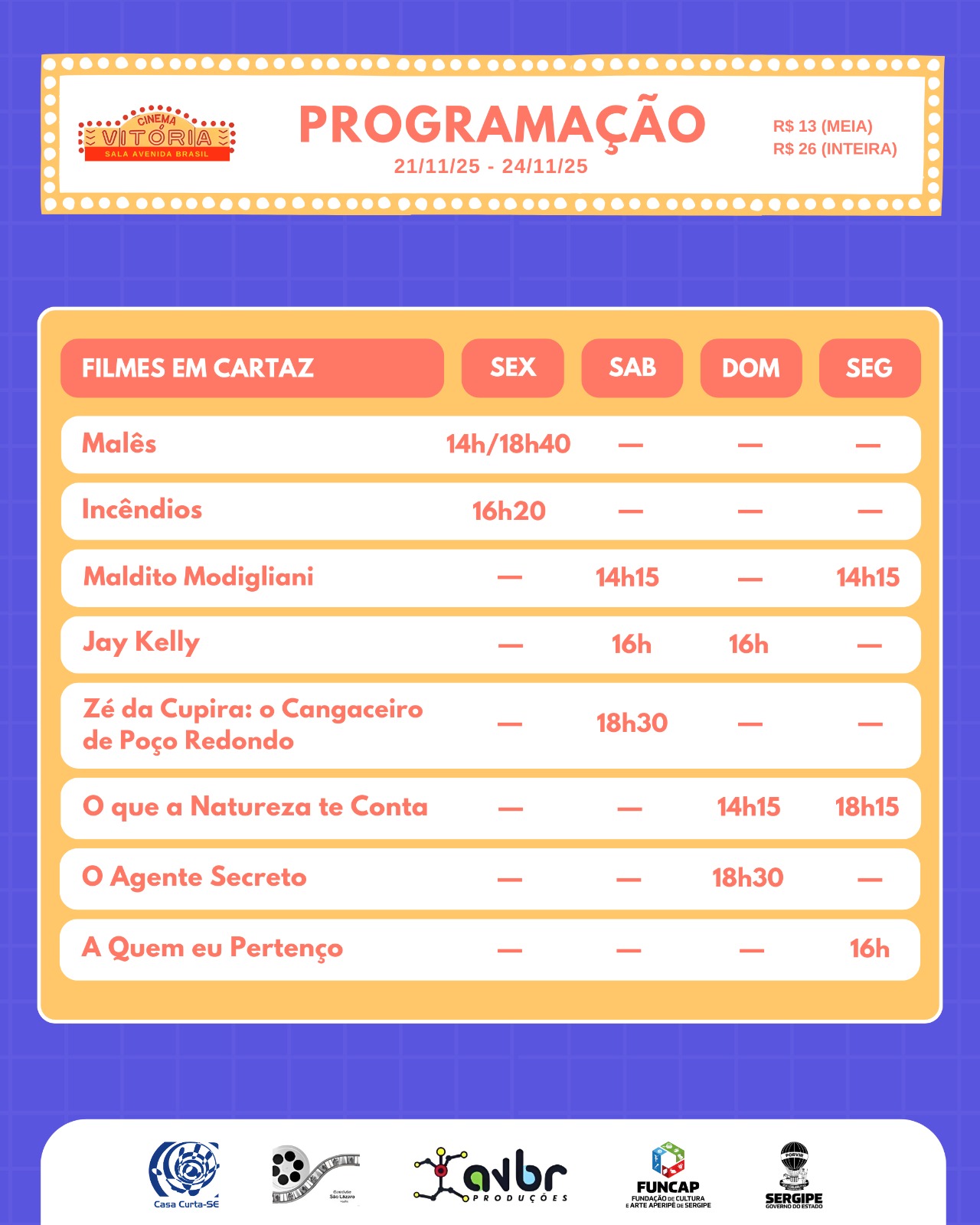 Confira a programação de 21 a 24 de novembro