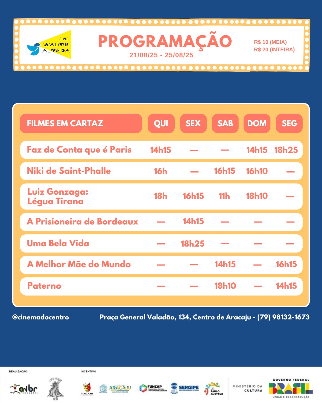 Confira a programação de 21 a 25 de agosto