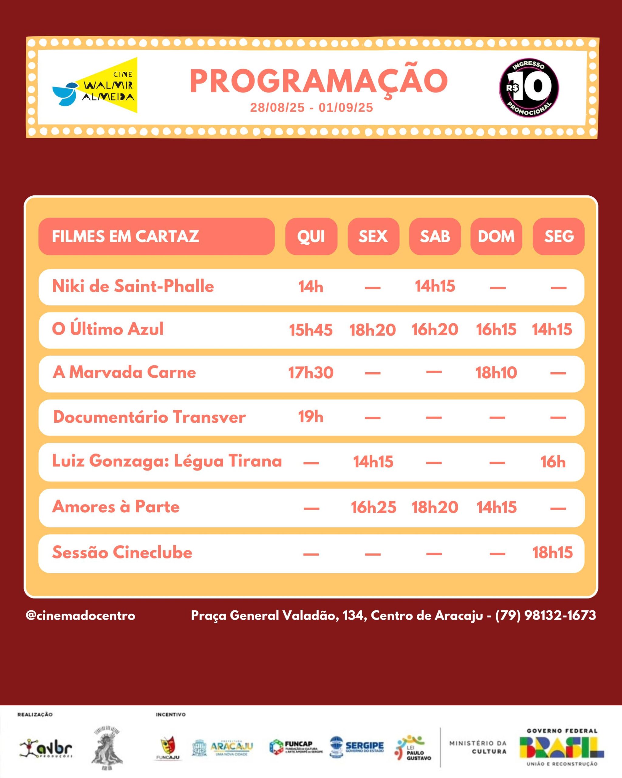 Confira a programação de 28/08 a 1° de setembro