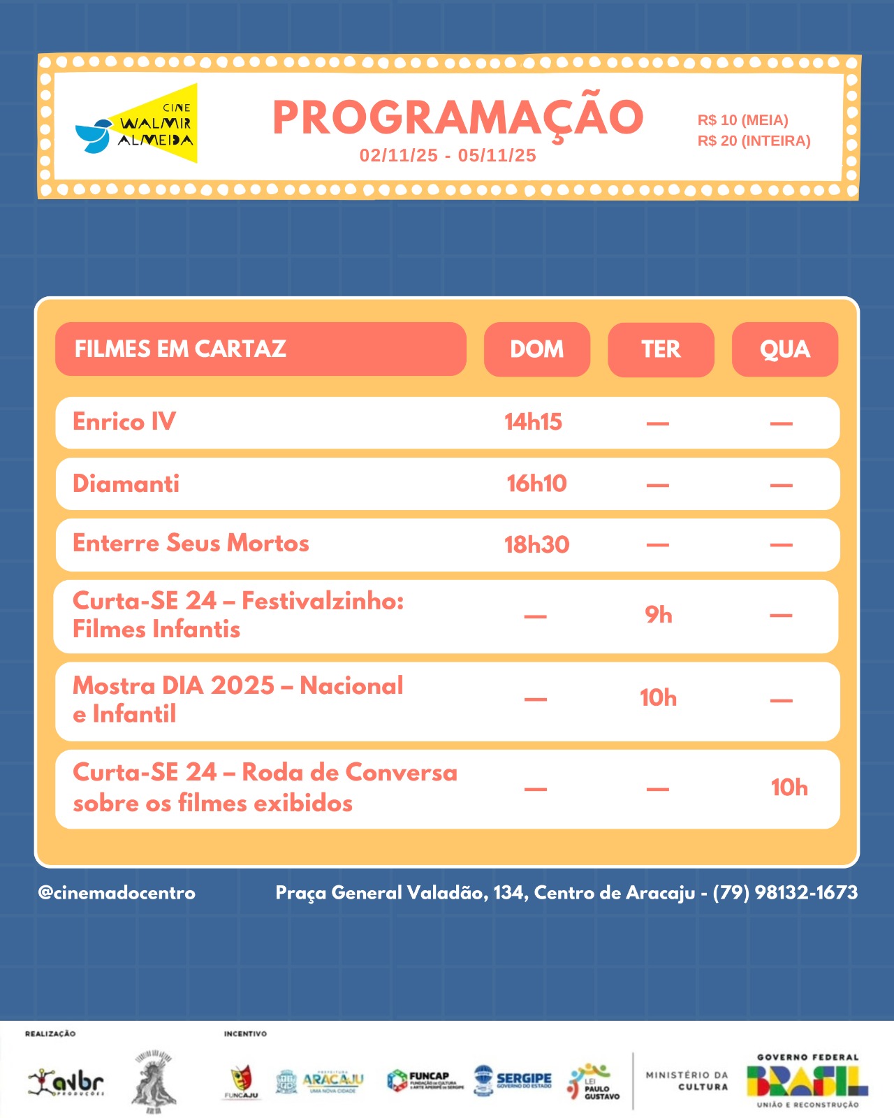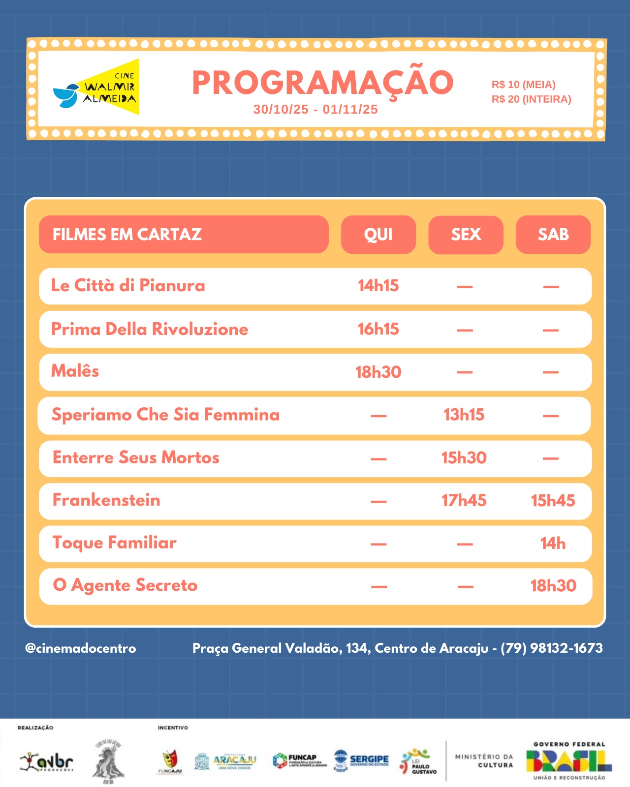 Confira a programação de 30/10 a 05/11