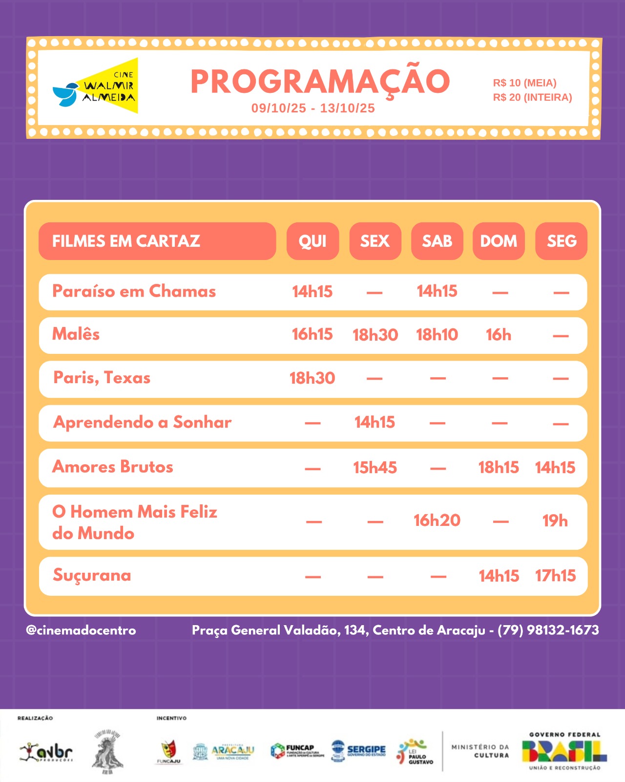 Confira a programação de 9 a 13 de setembro